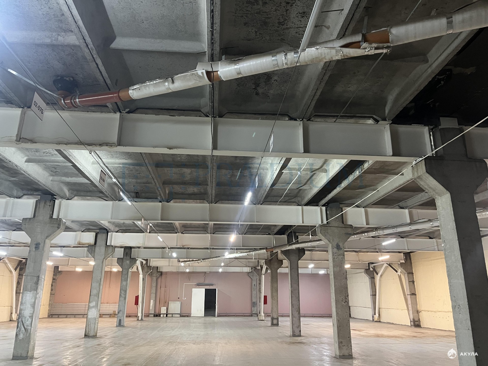 Полы - бетон с антипылью. Нагрузка на пол - 2 т/м²