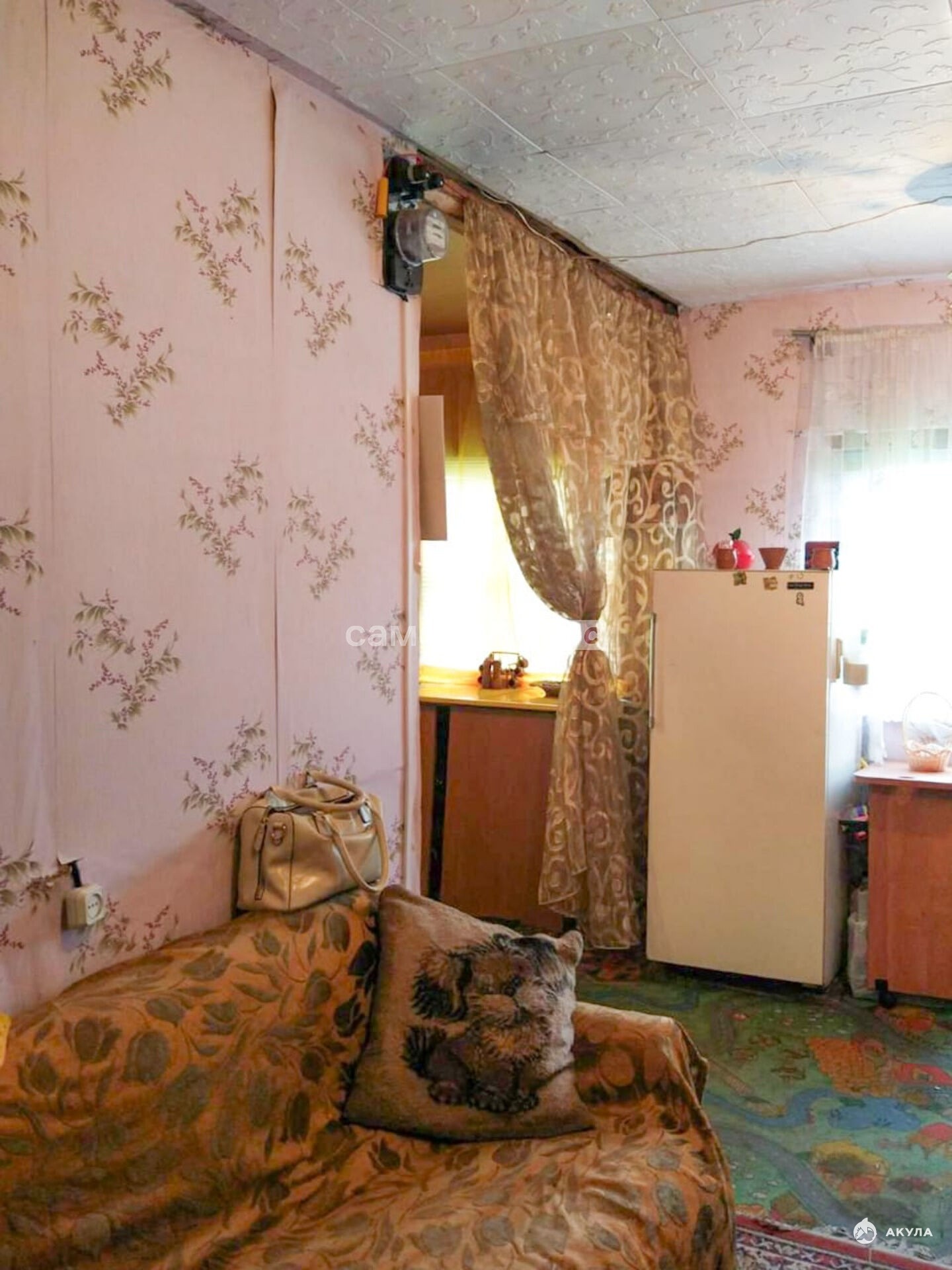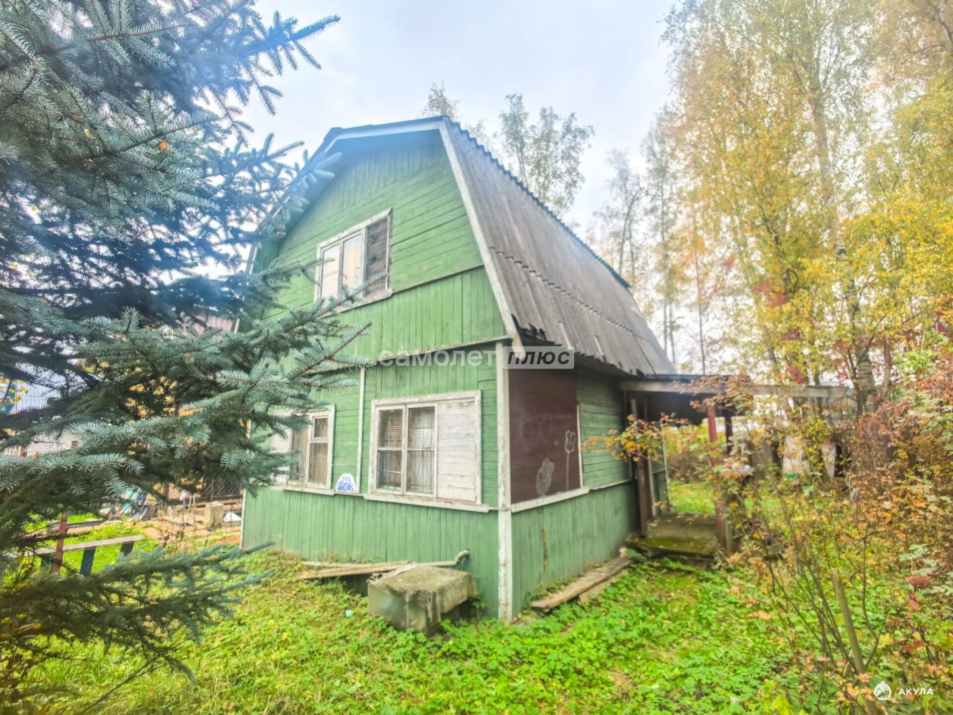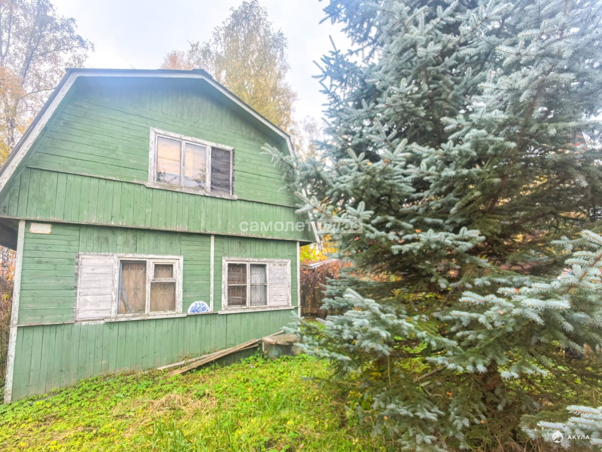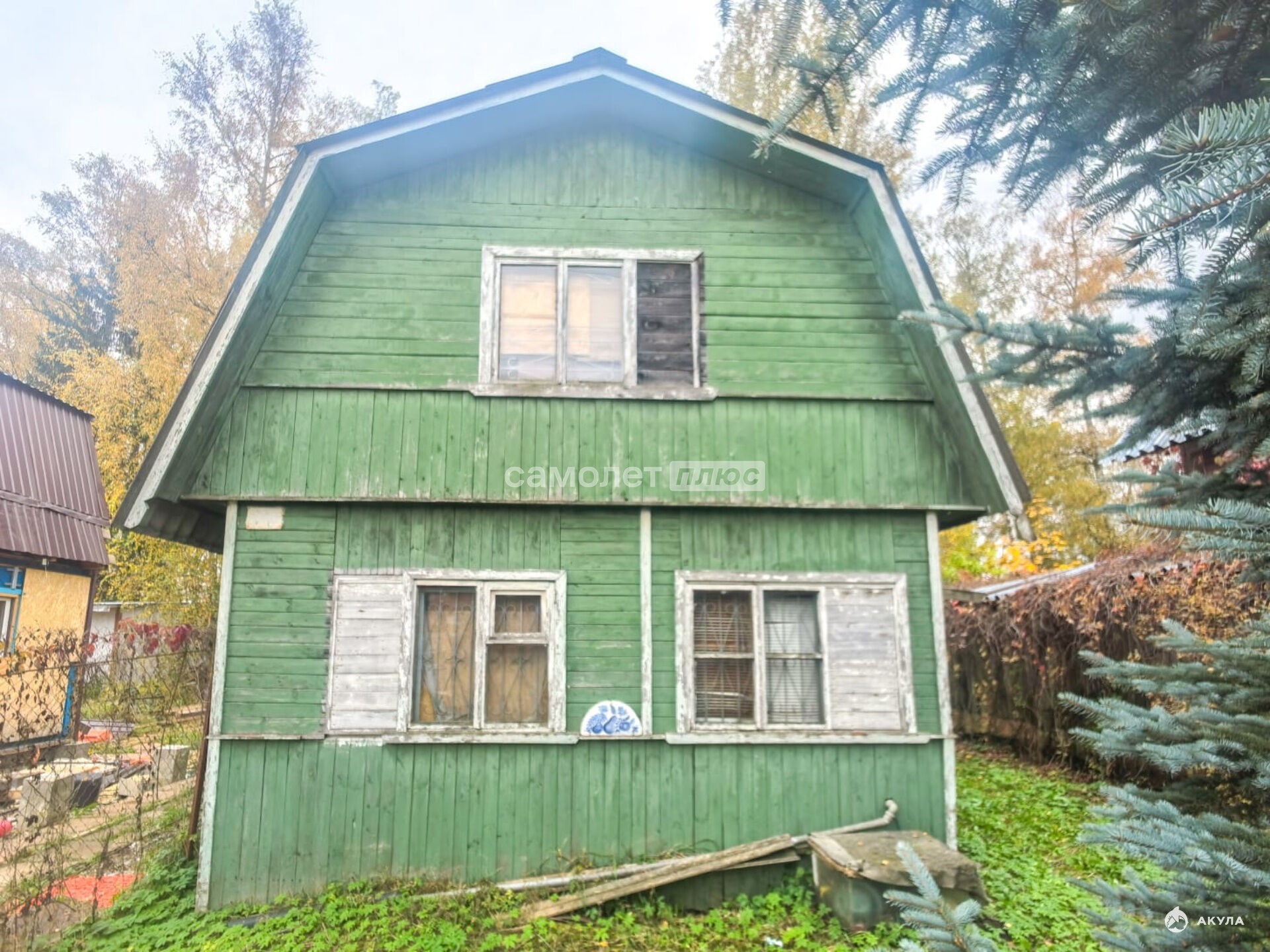 Дом двухэтажный. Каркасно-щитовой. Крыша покрыта шифером. Фундамент - бетонные столбики.