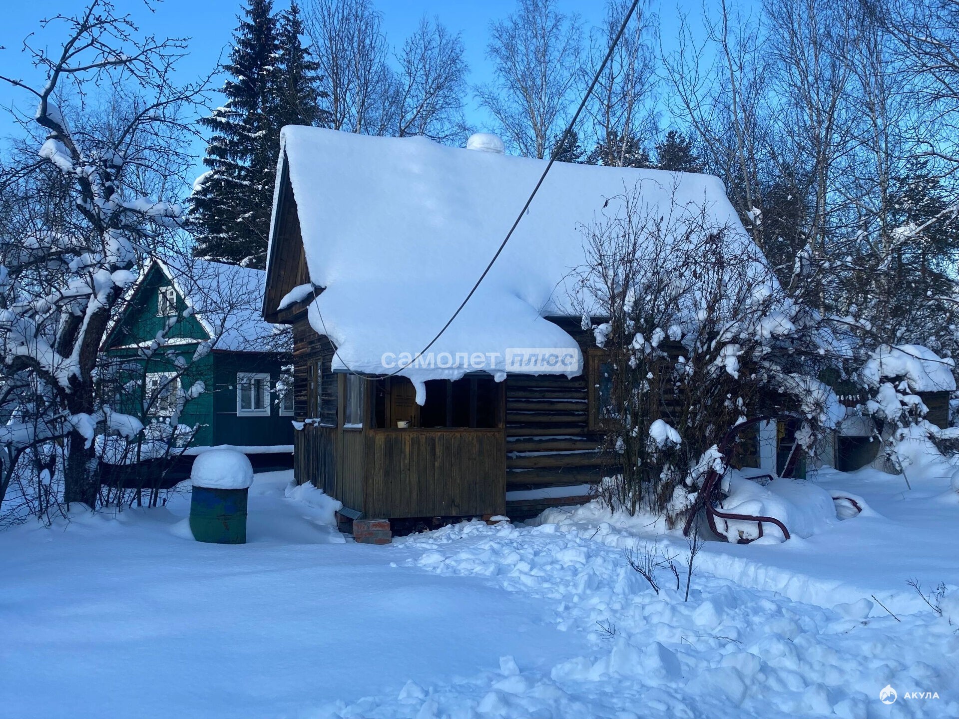 · Два дома — один участок. Каркасный дом (48 м²) двухэтажный с четырьмя комнатами и террасой. Утеплённый зимний сруб (24 м²) с дровяной печью — идеален для круглогодичных наездов.