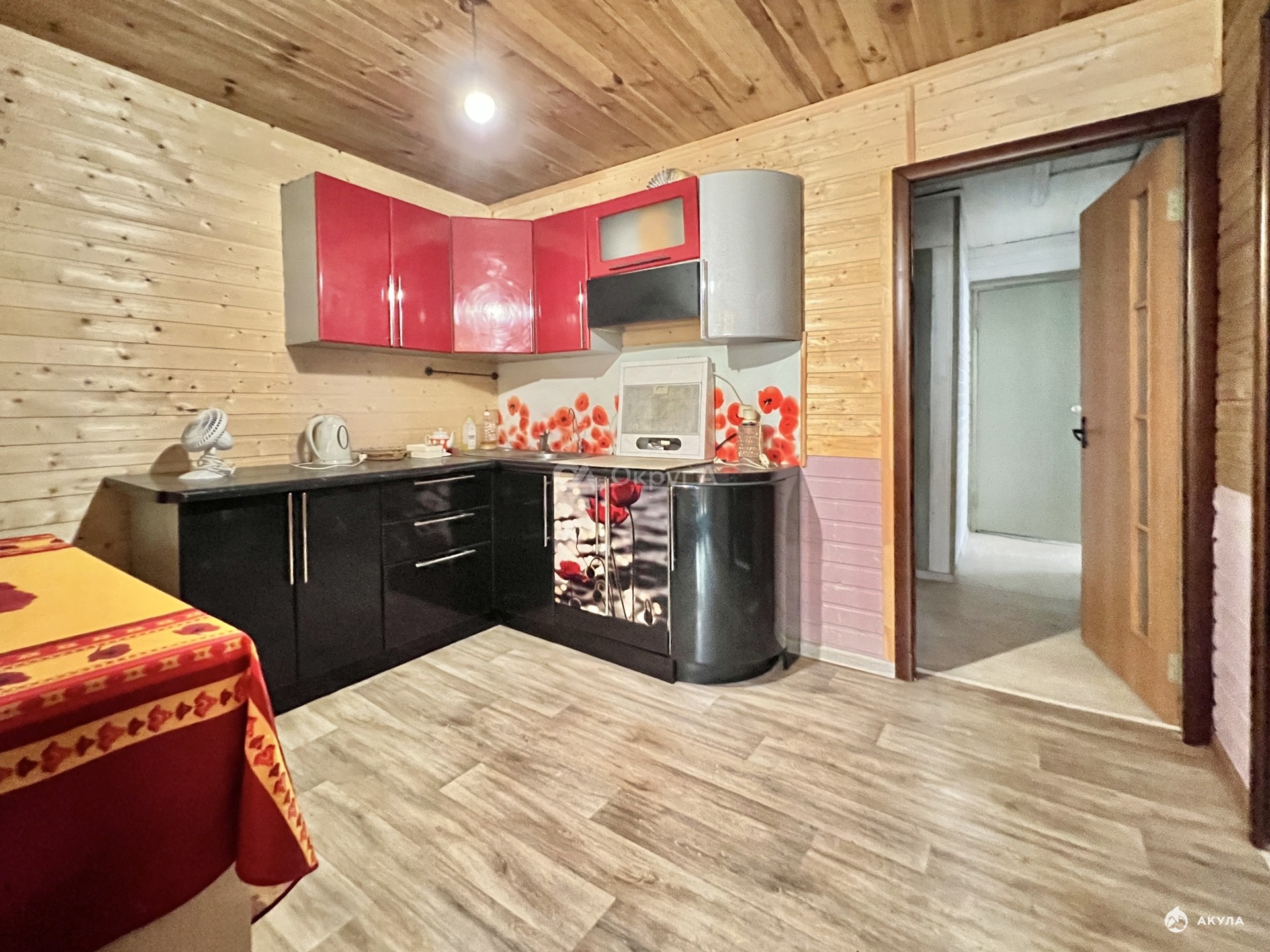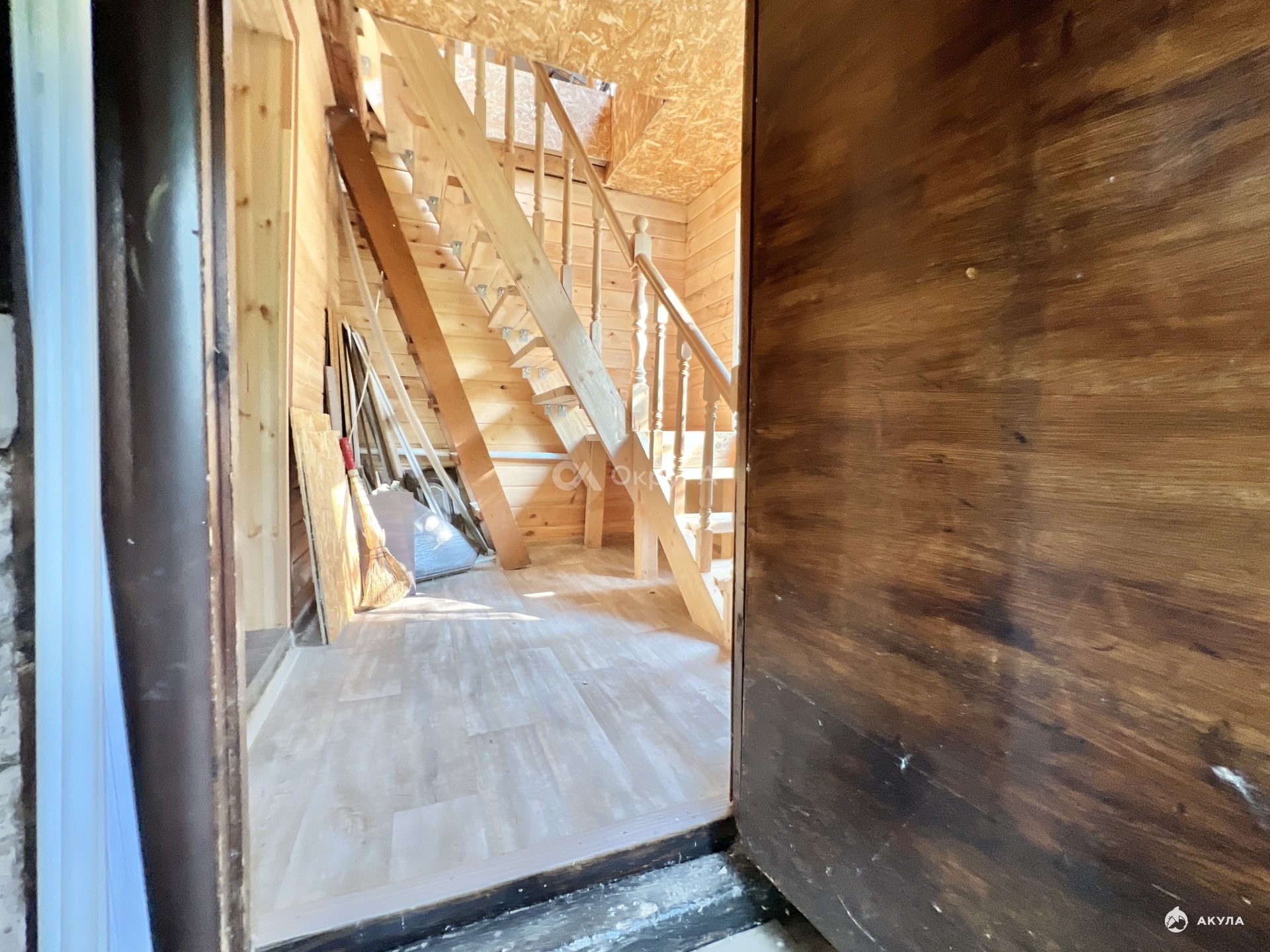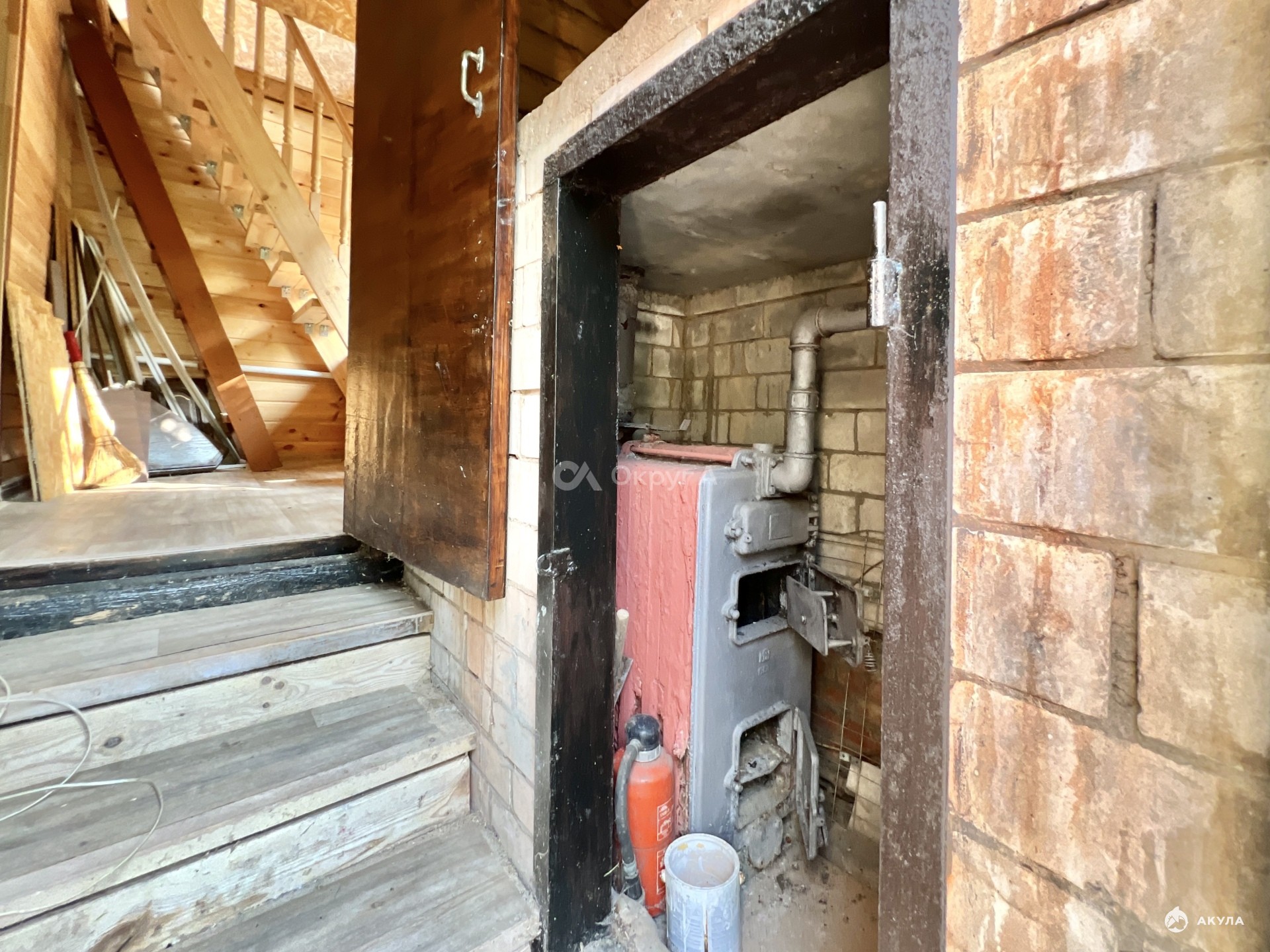 Двухэтажный дом общей площадью 140 кв м. Фундамент – ленточный с заглублением, стены 1 этажа – бревно с утеплением и теплым швом, стены 2 этажа – каркас с утеплением, пристройка к дому – брус с утеплением. Крыша – металлочерепица. На 1 этаже расположены: холл, просторная кухня с обеденной зоной, три больших изолированных комнаты, с/у. На 2 этаж ведет грамотно спроектированная лестница, где расположен одна просторная комната (без отделки). В доме установлены каменная печь и твердотопливный котел (требует доработки). Разводка отопления выполнена по всему дому.