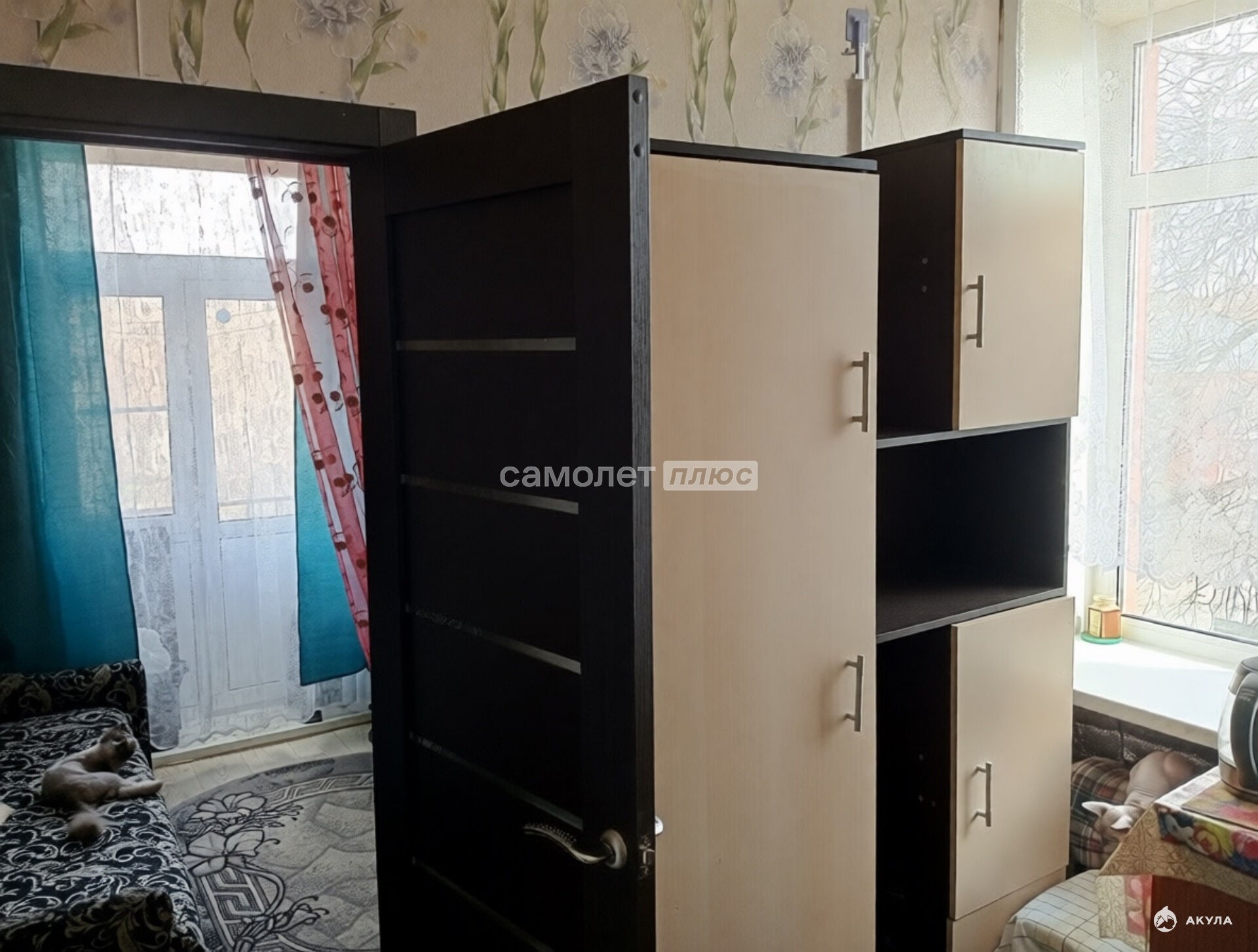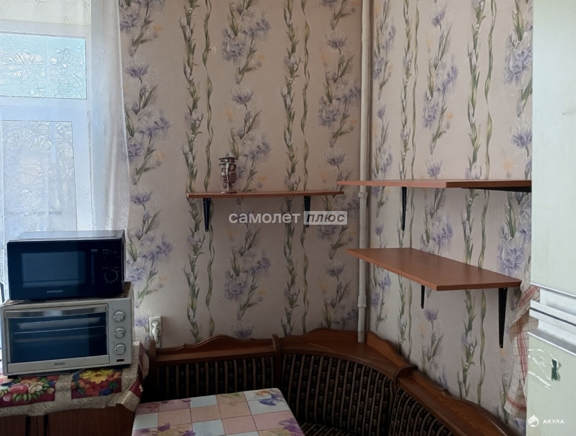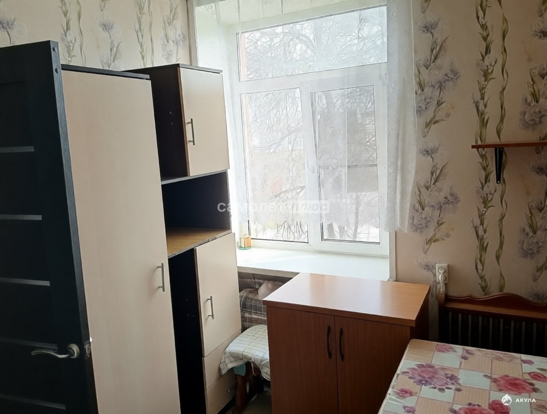 Комната в хорошем состоянии, окна ПВХ, на полу ламинат, сама комната разделена на спальное место и кухню.