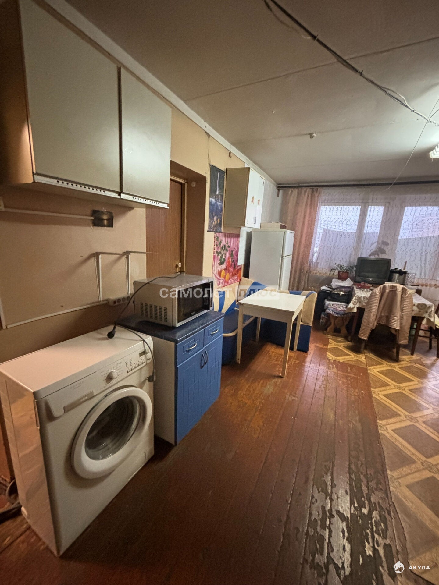 Продается комната в четырехкомнатной квартире с видом из окон во двор на южную сторону света. В соседних комнатах проживают соседи. К местам общего пользования относятся кухня и санузел. В квартире имеется общая шестиметровая лоджия, которая используется каждым из соседей. В комнате и квартире тепло. Соседи тихие, спокойные, не шумные. Продавая комнату, собственник готов оставить шкафы, стиральную машинку, холодильник, микроволновку и прихожею.