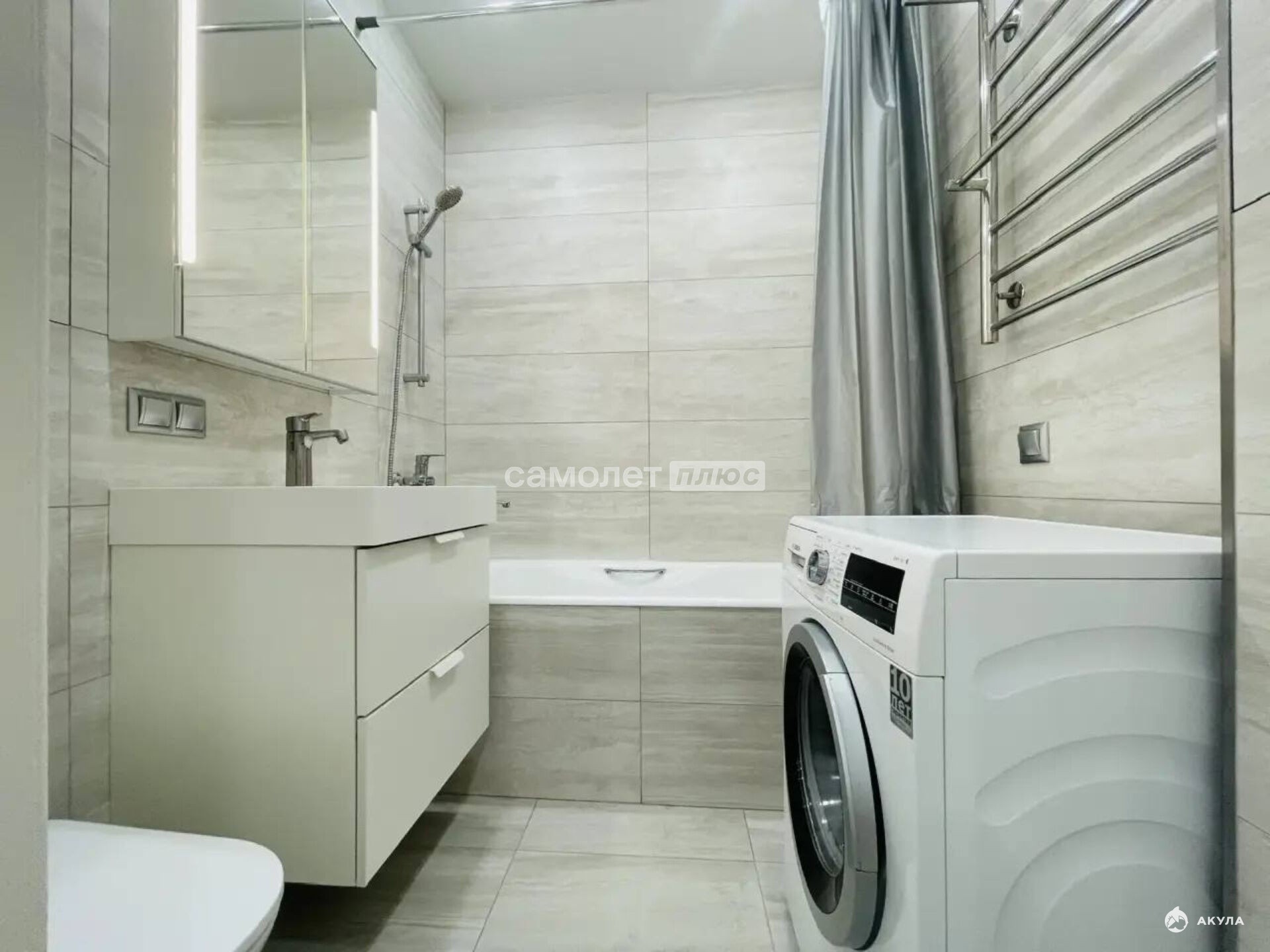 ✅ Ванна . Пол и стены - испанский керамогранит, полотенцесушитель Terminus. Вытяжка с обратным клапаном. Подвесной унитаз и ванна чугунная Roca. Шкафы с доводчиками и раковина IKEA.