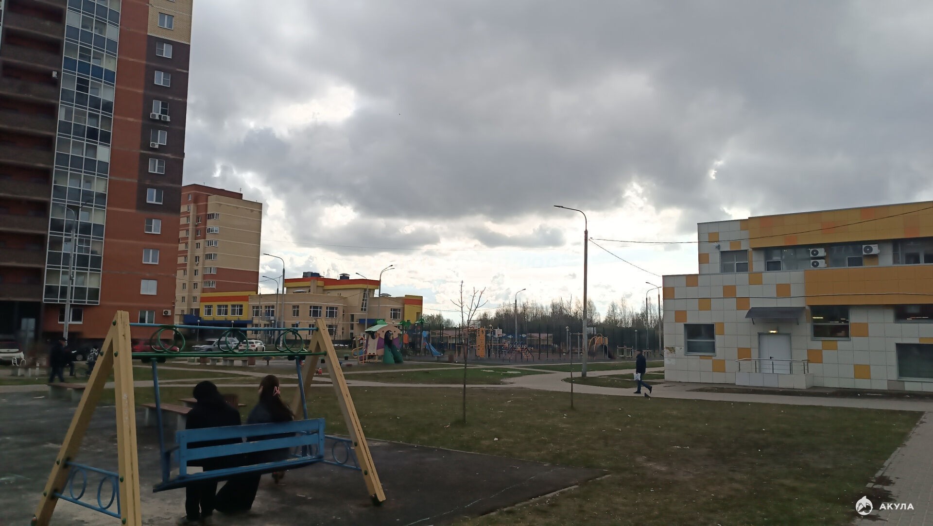 Ухоженный двор с детскими и спортивными площадками.