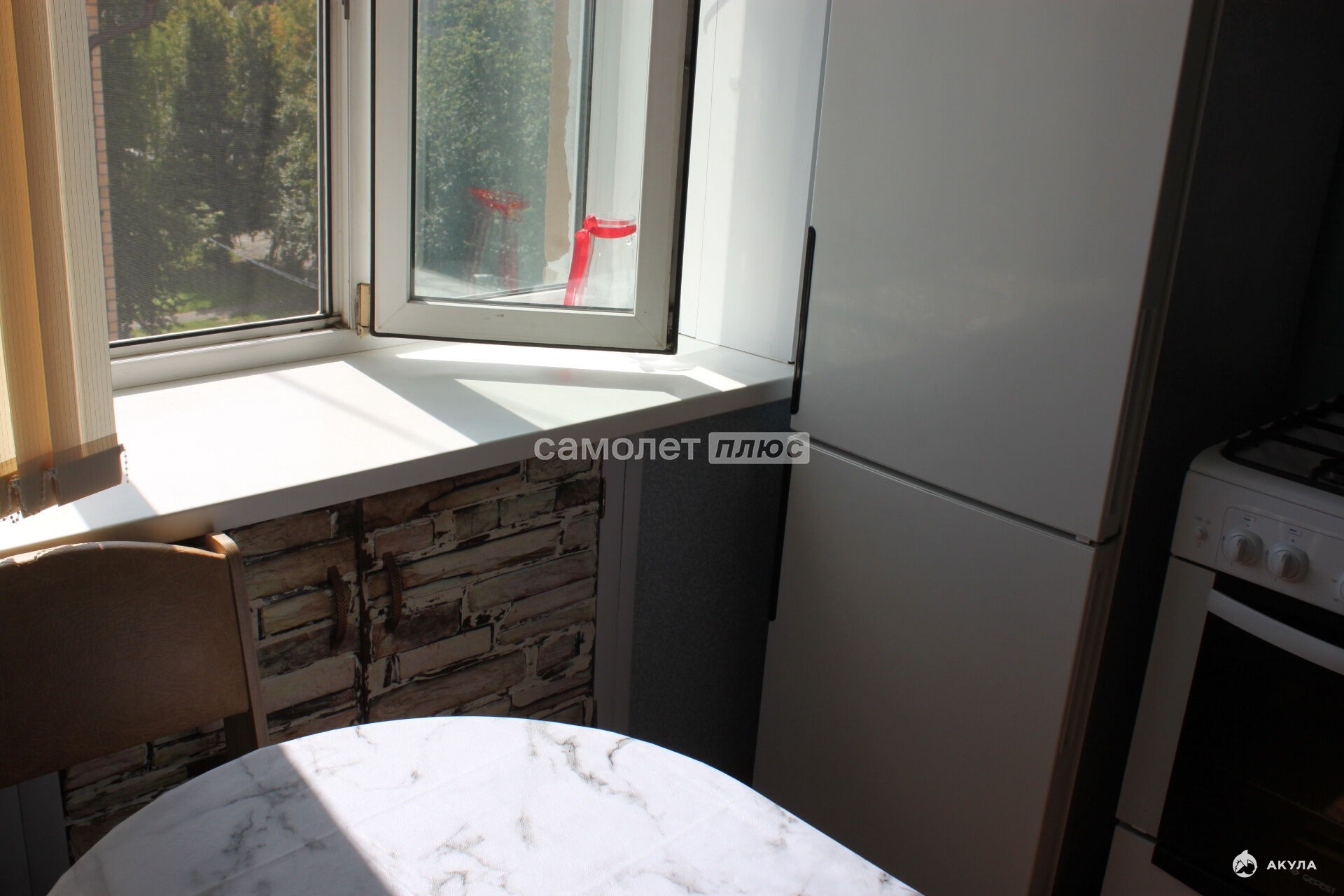 Окна гостиной и двух спален выходят на восток, окно кухни и второе окно спальни выходят на юг, в квартире 5 окон, квартира наполняется солнечным светом с утра и до вечера.