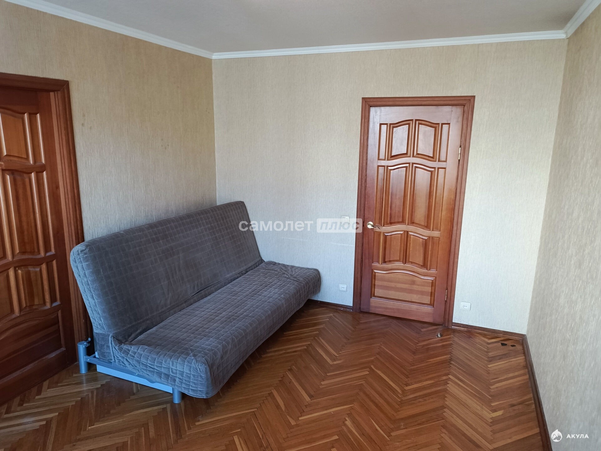 Полы покрыты паркетом.